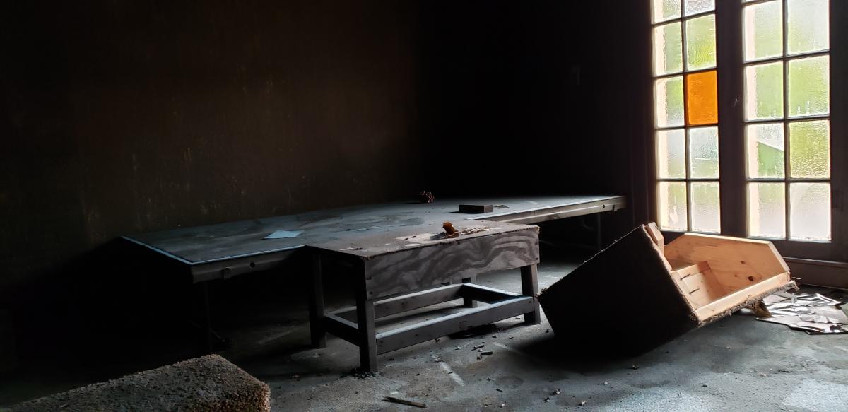 Monday, January 6th, there was a walkthrough of 230 S. Holmes to evaluate the remediation. The interior has beens sprayed with a sealer to contain and lingering smell. Some of the smell can not be contained until charred beams and windows are replaced during a restoration process. The areas impacted have been marked with red and black spray paint. For example, there is a space between the wood framing and the brick exterior in the administration office area. The wood framing will not come down until a restoration phase. Also, several support beams as well as the encasement around the windows still emit an odor. These items/areas will eventually be removed and replaced.