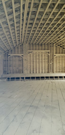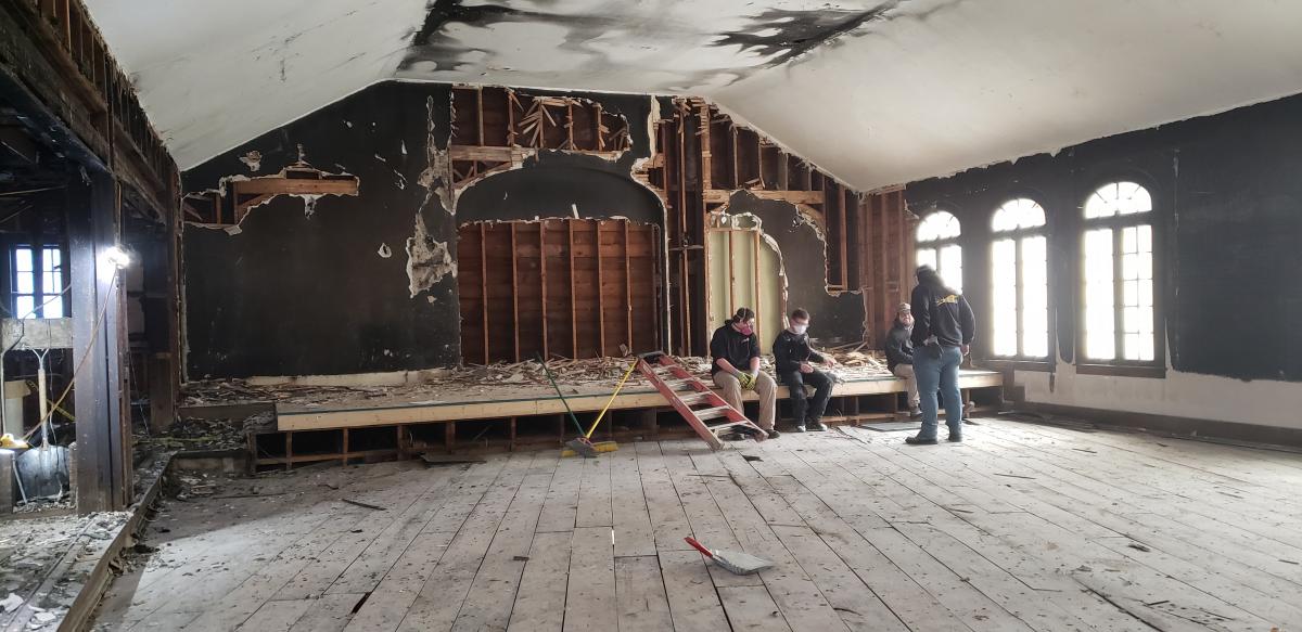 June, 2020: When restrictions were lifted on construction, we hired architect Roger Donaldson to create new plans for the building which would include restoring the building from the fire and the addition which would make the building handicap accessible.