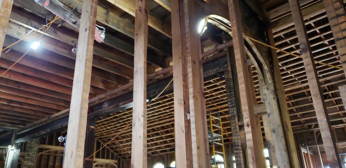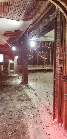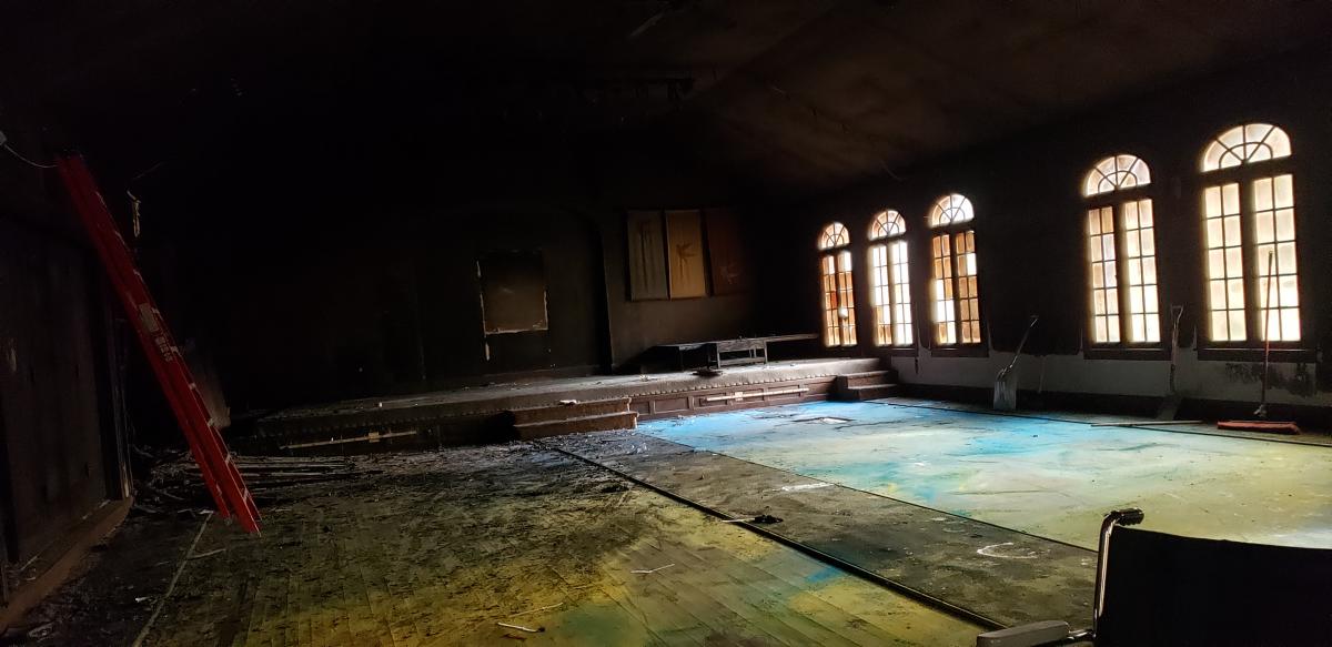 McCardel continues in their 4 week process to "Gut" the building. They are currently tearing up the damaged hardwood floor in the sanctuary.