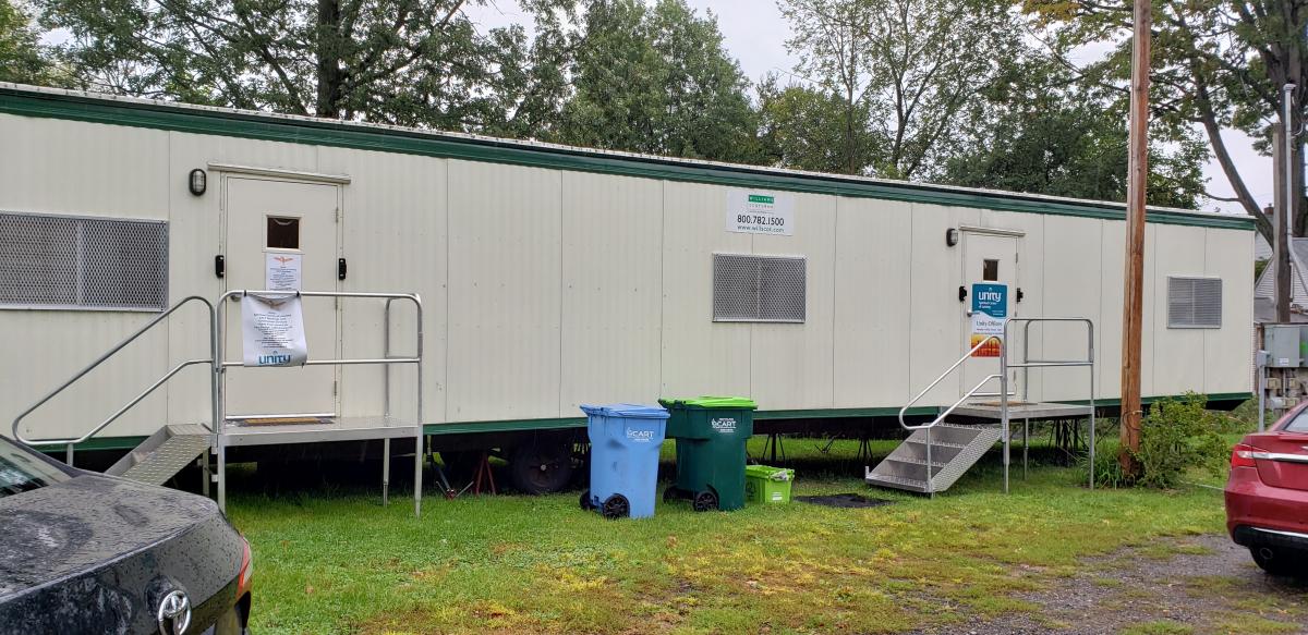 The trailer for offices and a meeting room was delivered today. JC Electric and Steve from BWL will meet at Unity on Wednesday, September 18th to determine how to hook up the electric. Comcast is schedule to hook up service tomorrow afternoon. Once electric is hooked up, a service connected with the trailer retental company will return to the trailer to hook up bathroom facilities. Then a skirt will be added to the trailer as a finishing touch. The trailer has stairs but no handicap ramp. To install a handicap ramp would have cost $15,000 for a year. Our limit on reimbursement is $50,000. Since we have no idea on how long we will be out of the our building, Rev. Sharon decided it would be advisable not to incurr this expense at this time. Since our current building did not offer this kind of access, it is hard to justify to insurance as this would be an upgrade.