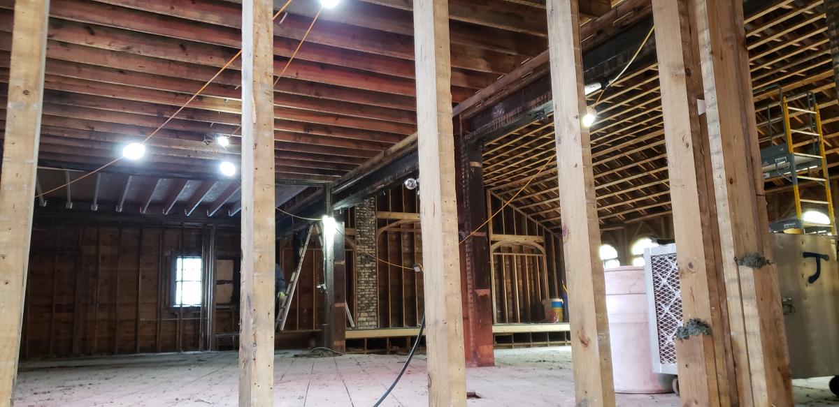 On Sunday morning Sept 8th, 2019 a fire started from an arc in an electrical junction box between the floors under Reverend Sharon’s office and the kitchen ceiling. This began the long road to where we are today. The Board of Trustees now meets twice a month to handle the additional tasks created by our current situation.