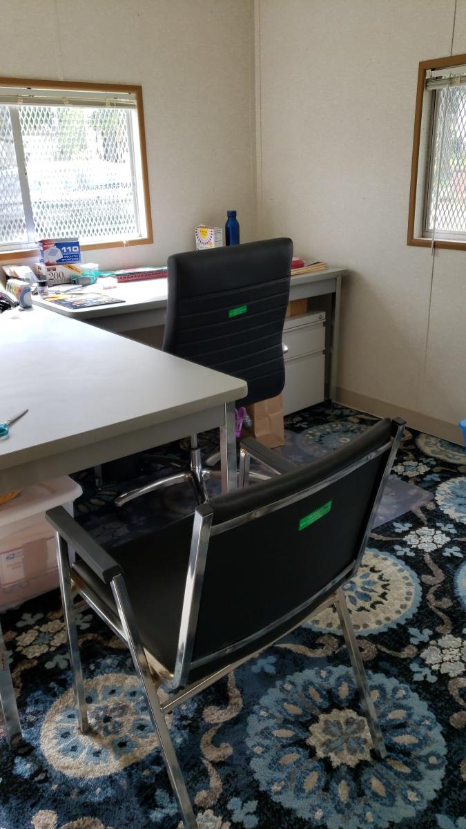 - Mobile Offices: electricity, phones, internet, heat, toilet, printers and copier all functioning. Magnetic Sign ordered for the trailer door. Skirting to trailer will be added in near future.